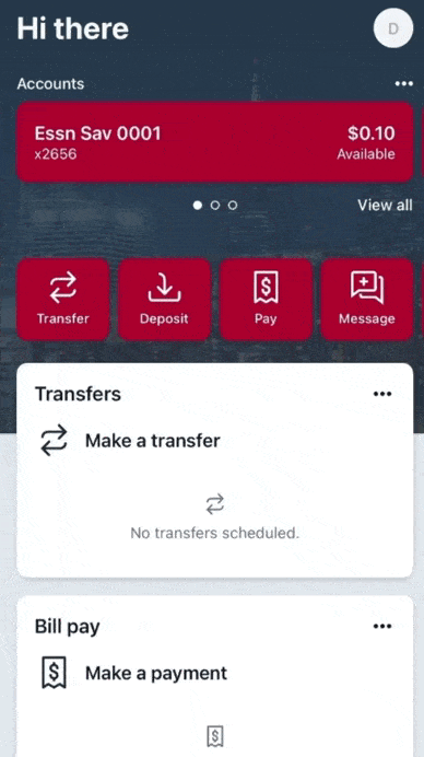 - After logging into digital banking from your phone or computer, choose the “Transfer” option in the red boxes below your accounts.